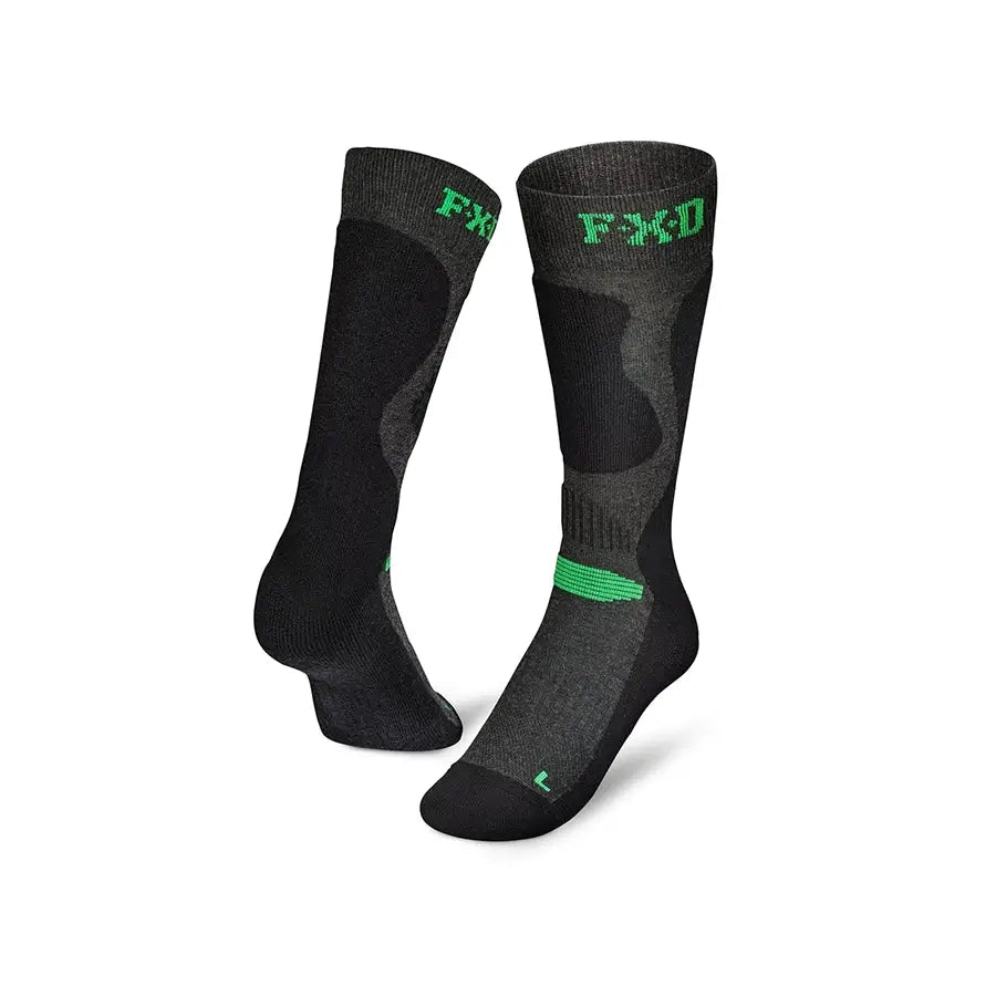 FXD Tech Sock 2 Pack Size 7-12 Black/Green