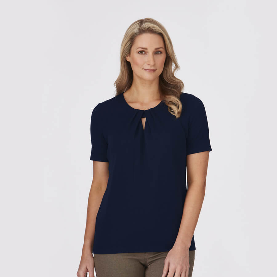 City Collection Keyhole Knit - Short Sleeve Blouse