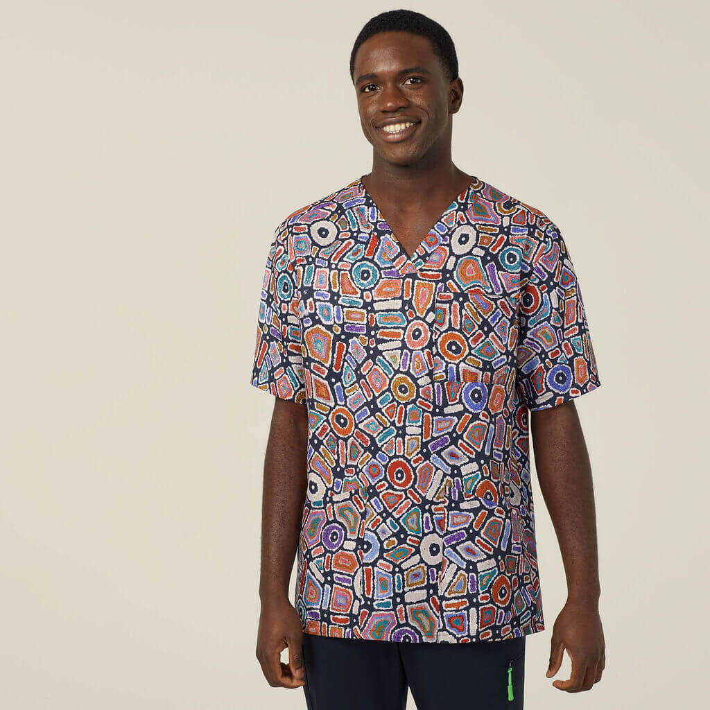 NNT CATRFR Warlu Indigenous Print Unisex Scrub Top